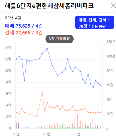 위 아파트 실거래가 그래프를 보면 12억짜리가 6억이되고, 14억짜리가 7억대까지 빠진 것을 확인할 수 있습니다.